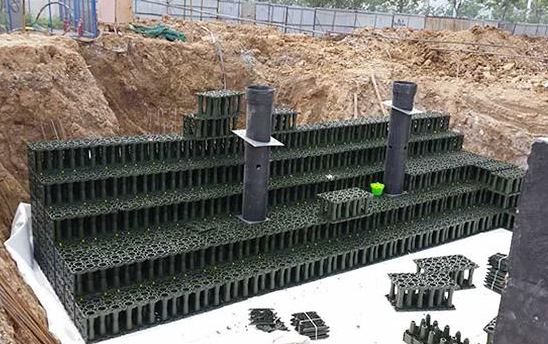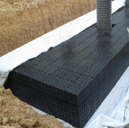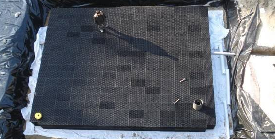 種植區域的排水利用排水層下的排水花管或者排水溝集中至排水口,然后經過雨水管路排進地面雨水池或者雨水滲透設備.